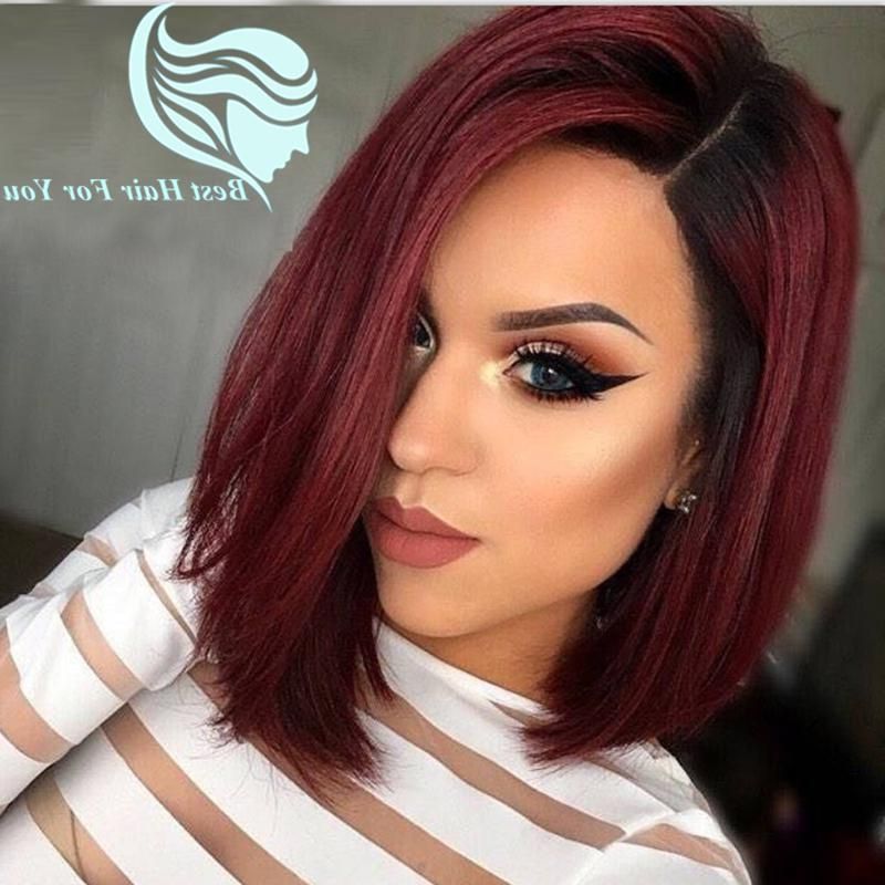 Amazon Com Ahairbeauty Red Ombre Short Bob Straight Synthetic None Lace Hair Wigs Dark Roots Left Part For Women Black Burgundy 1b 99j Beauty Personal Care